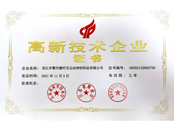 吳江市聚杰微纖無塵潔凈紡織品有限公司通過高新技術企業認定 吳江市聚杰微纖無塵潔凈紡織品有限公司成立于2012年,是聚杰微纖集團下屬子公司,依托公司專業研發、生產超細纖維制品的專業優勢,主要經營無塵擦拭...